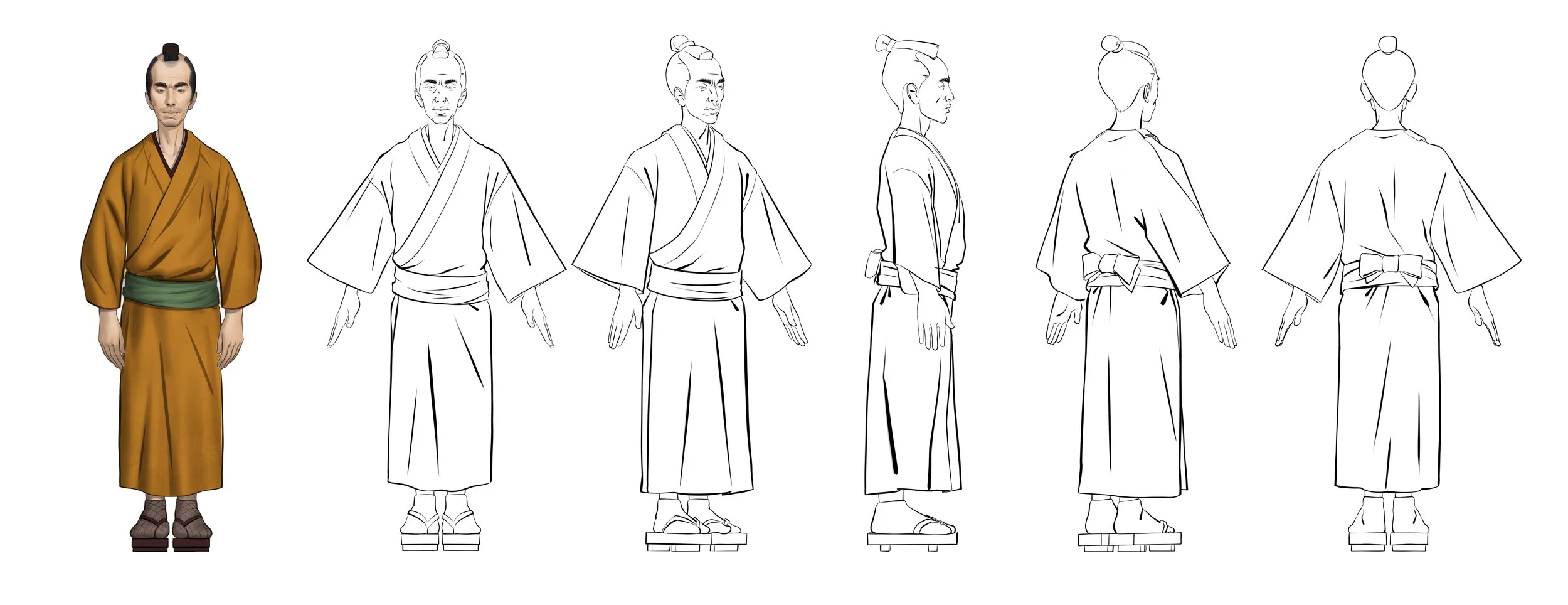 The show was originally pitched for a full 3D realistic adult animation. Show-runner approved characters were sent to Paloma and finalized.