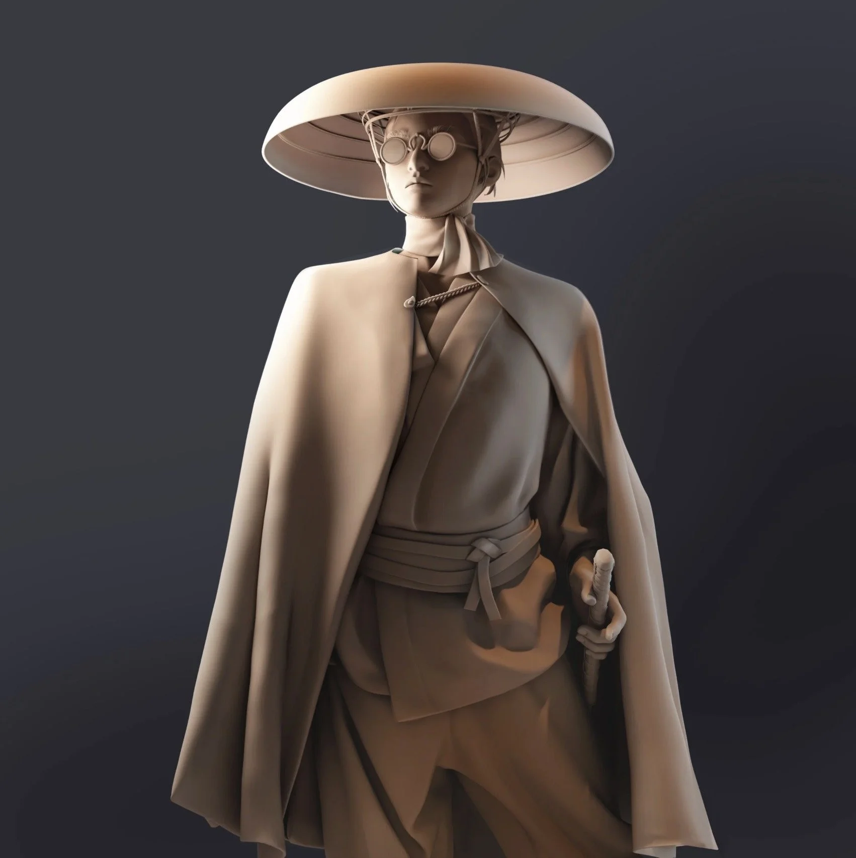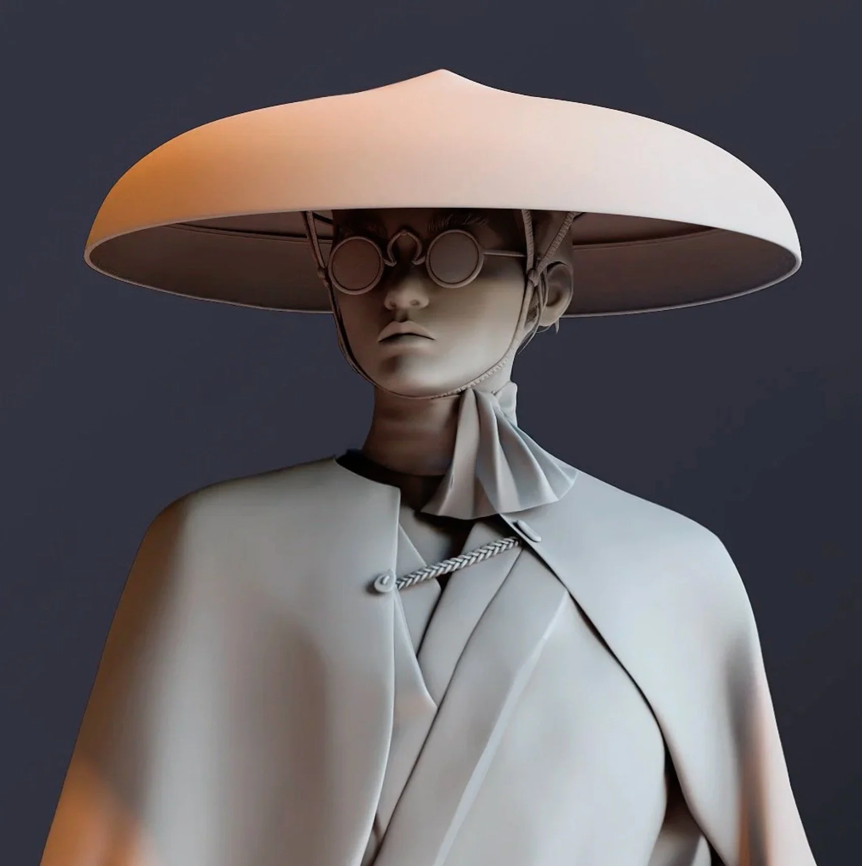 Aiming for Clint Eastwood-esq androgynous features and expression.